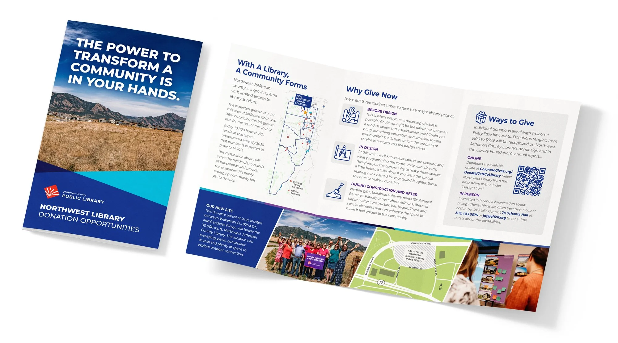 JCPL is building a new library in Northwest Jeffco! I created a number of materials including direct mail, donor booklets, and in-library promotion to inform and engage the community and help secure funding.